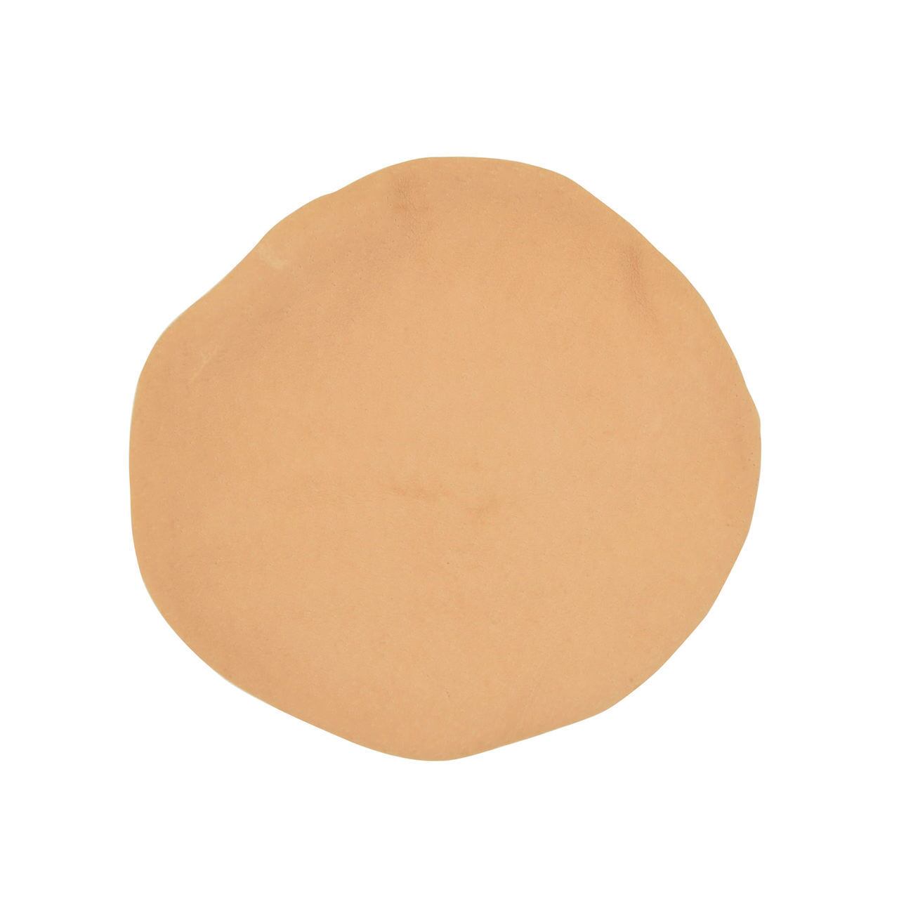 この革を使って丸型財布を作り、その後、革の可塑性を利用し、水につけ手で形を整え乾かすと煎餅そっくりの小銭入れが完成です。