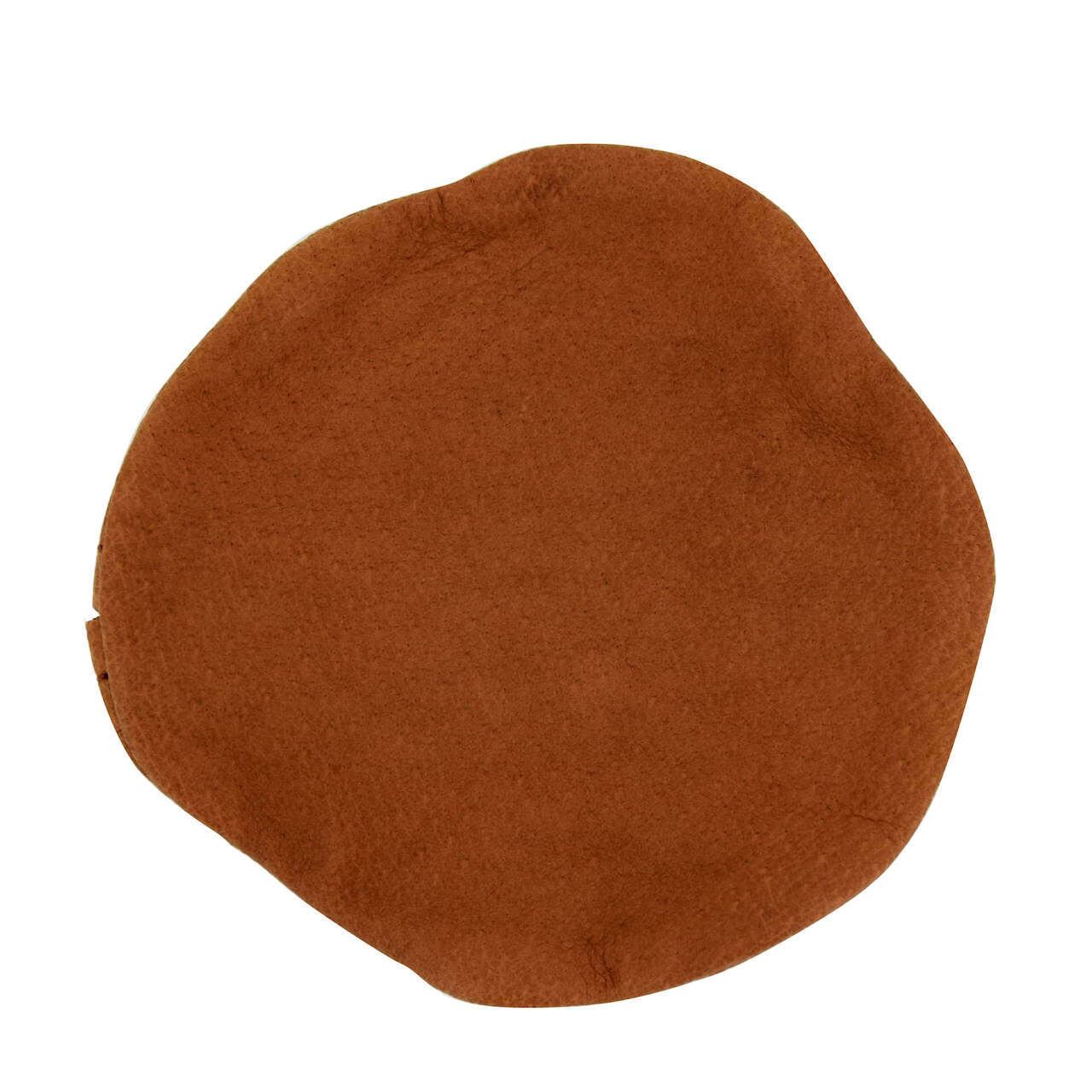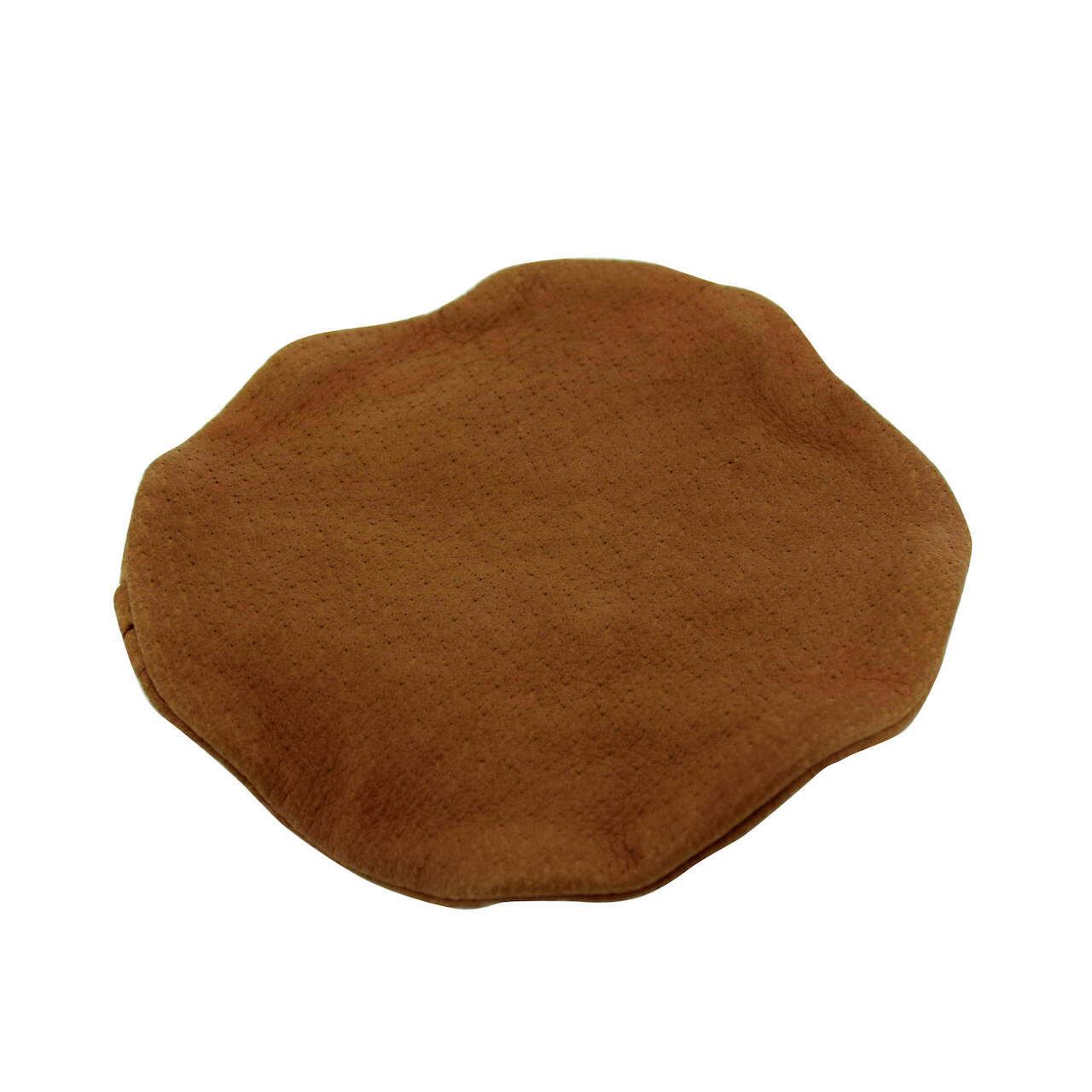 この革を使って丸型財布を作り、その後、革の可塑性を利用し、水につけ手で形を整え乾かすと煎餅そっくりの小銭入れが完成です。
