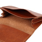 イタリア植物タンニンなめし革協会に所属するタンナー、La Perla Azzurra(ラ・ペッラ・アズーラ)社のCOUNTRYという革の品番で作成したパスケースです。牛のショルダーの部分を使用しています。色はブラウンです。フルベジタブルタンニンなめし染色で、ドラム/タンブル加工された革です。イタリアンレザーらしい深みのある色合いの革です。使用していくうちにより深みのある色合いとなり、エイジングが楽しみなヌメ革です。